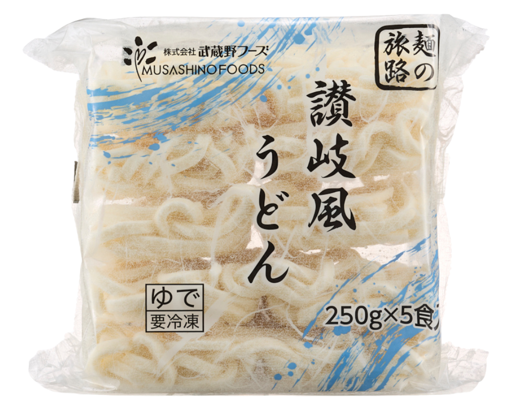 讃岐うどんをモチーフにしたうどん。厳選した小麦粉と、多加水ミキサーで弾力のある食感に仕上げました。